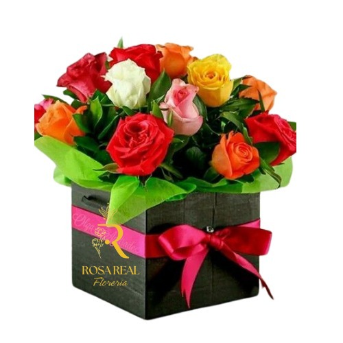 Vibrante box con 12 rosas multicolor, que celebran la diversidad y la alegría. Cada rosa, con su color único, representa una emoción diferente, creando una composición llena de vida y frescura.