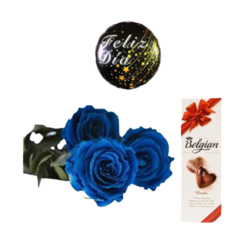 Elegante ramo de 3 rosas tinturadas acompañado de un fino chocolate Belgian. Este combo es perfecto para expresar amor, gratitud o cariño en ocasiones como aniversarios, cumpleaños